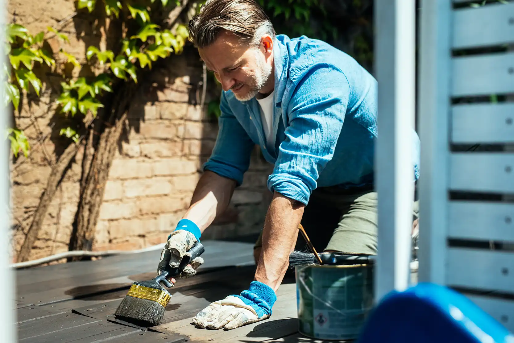 „Gut vorbereitet ist halb geschützt“, empfiehlt Becker Holz. Bevor Farbe, Öl, Wachs oder Lasur aufgetragen werden, muss das Holz sauber, trocken und glatt sein. Alte Altbeschichtungen oder Verwitterungen abschleifen, ggf. auch Nut/ Feder-Verbindungen säubern. Danach eine passende Grundierung wählen – etwa Holzgrund oder Grundieröl mit Bläueschutz. Diese Schritte helfen, dass der Schutz tief einzieht und lange hält.